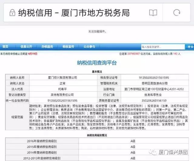 在近期公布的福建省納稅信用等級中,恒興集團(tuán)及在廈子公司廈門寶拓資源有限公司再次榮獲“A級”信用評級。
