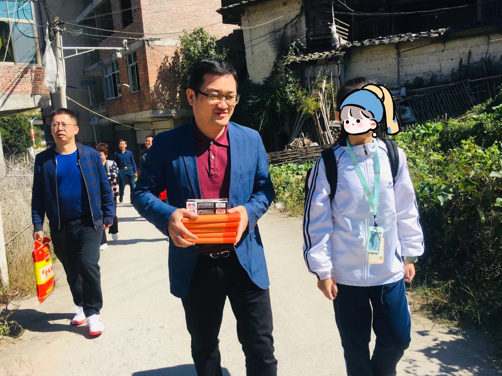 來到恒興中學(xué),我做了一件很開心的事,那就是帶著幾位行政領(lǐng)導(dǎo)和班主任,驅(qū)車到安溪縣感德鎮(zhèn)石門村,去初一年段珊珊同學(xué)家里去探望她和她的爺爺,并送上學(xué)校的上萬元的助學(xué)金、慰問金和文具、大米等生活用品,這等于免去了她的學(xué)費(fèi)。