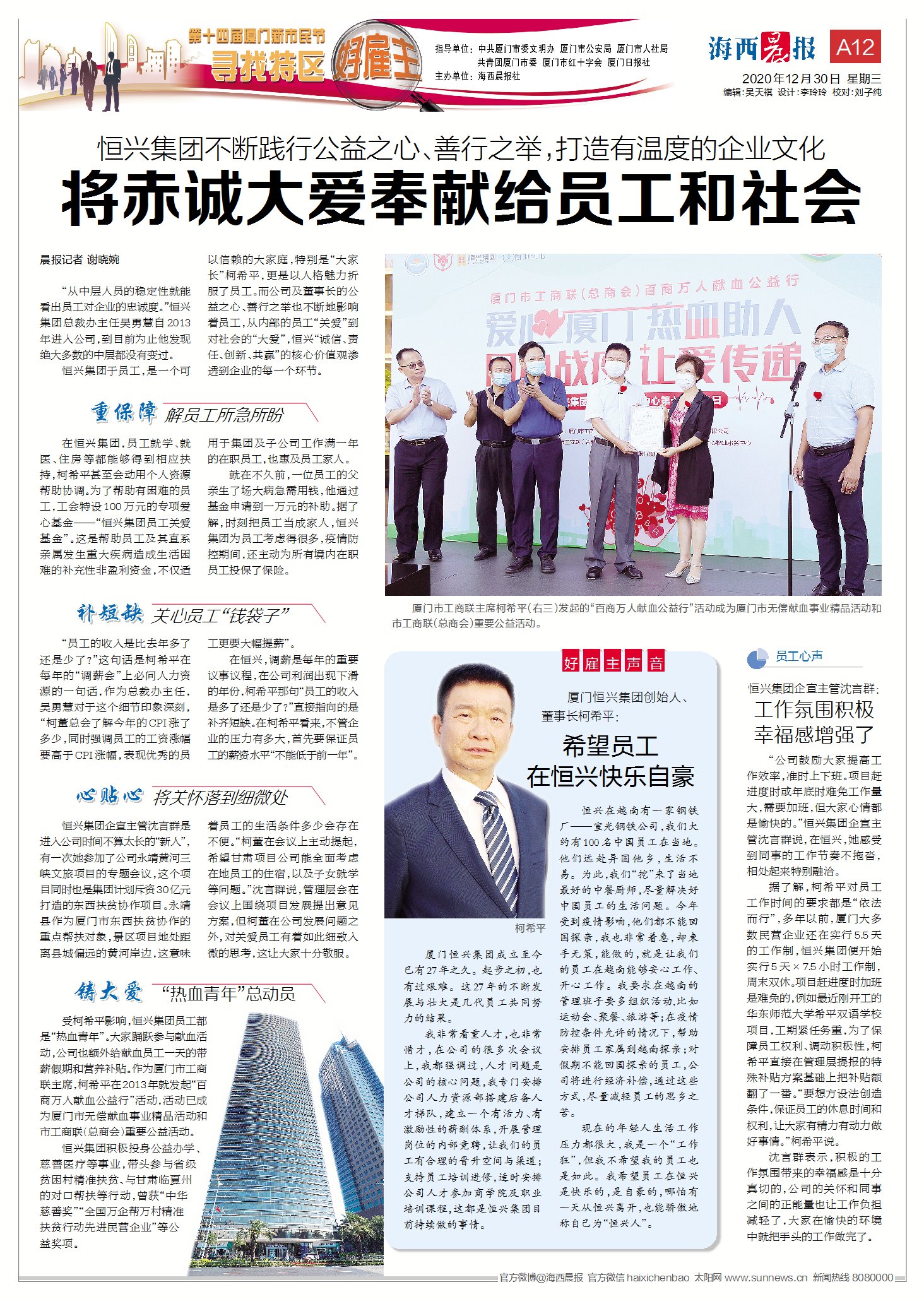 廈門(mén)恒興集團(tuán)不斷踐行公益之心、善行之舉